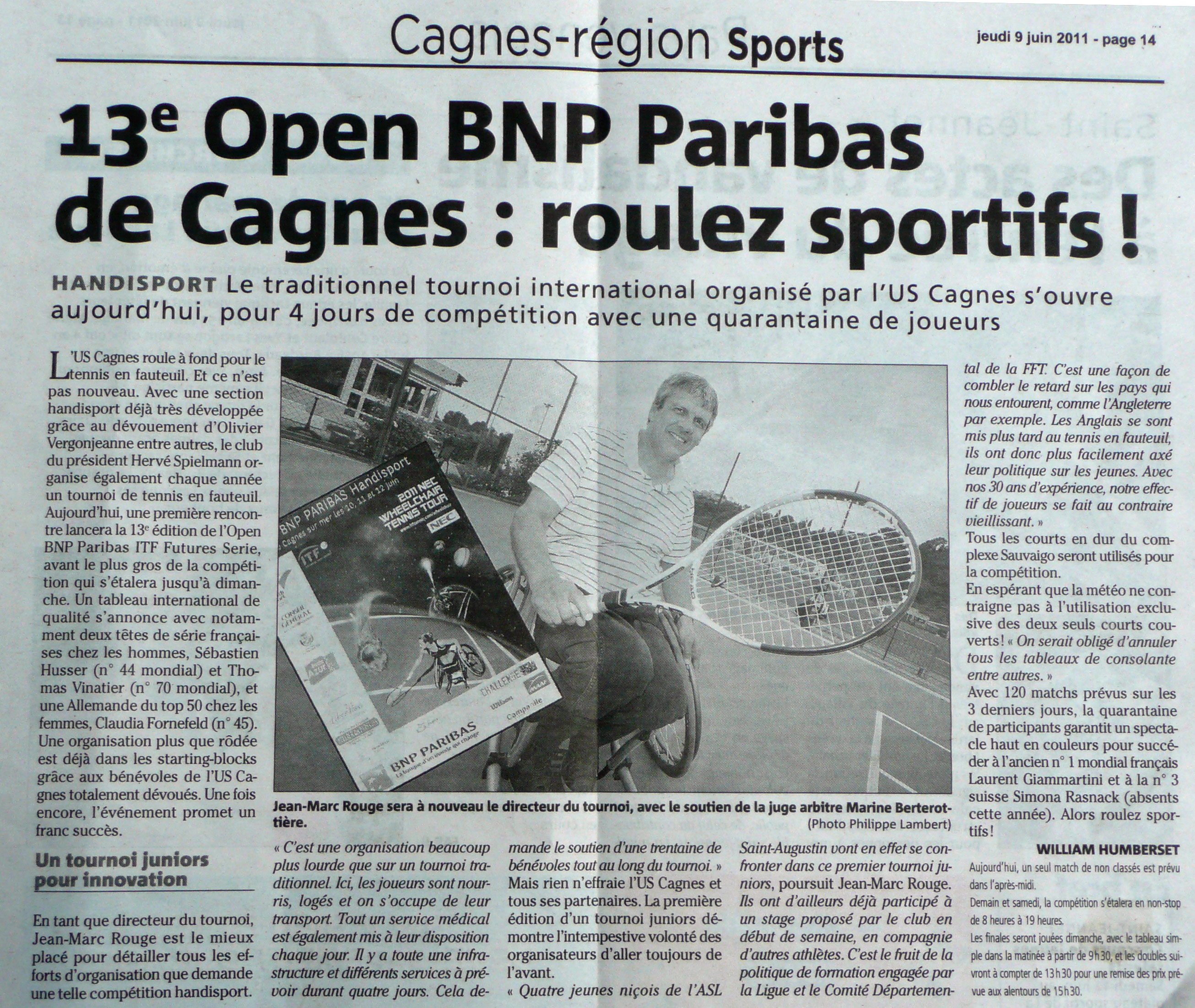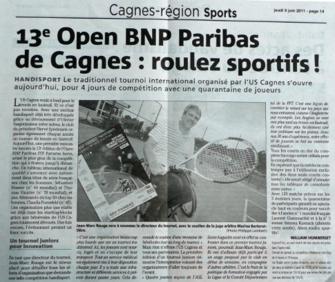 Annonce du tournoi dans NICE MATIN