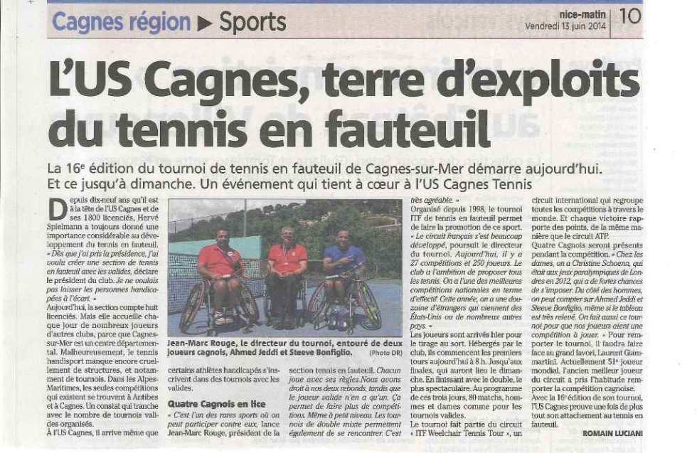 Presse 2014 - PARATENNIS OPEN DE CAGNES